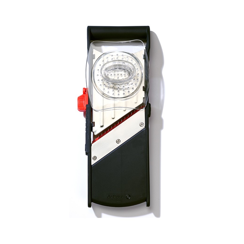 Coupe-légumes De Buyer Industries complet avec poussoir protecteur et deux peignes julienne 2 et 4 mm.