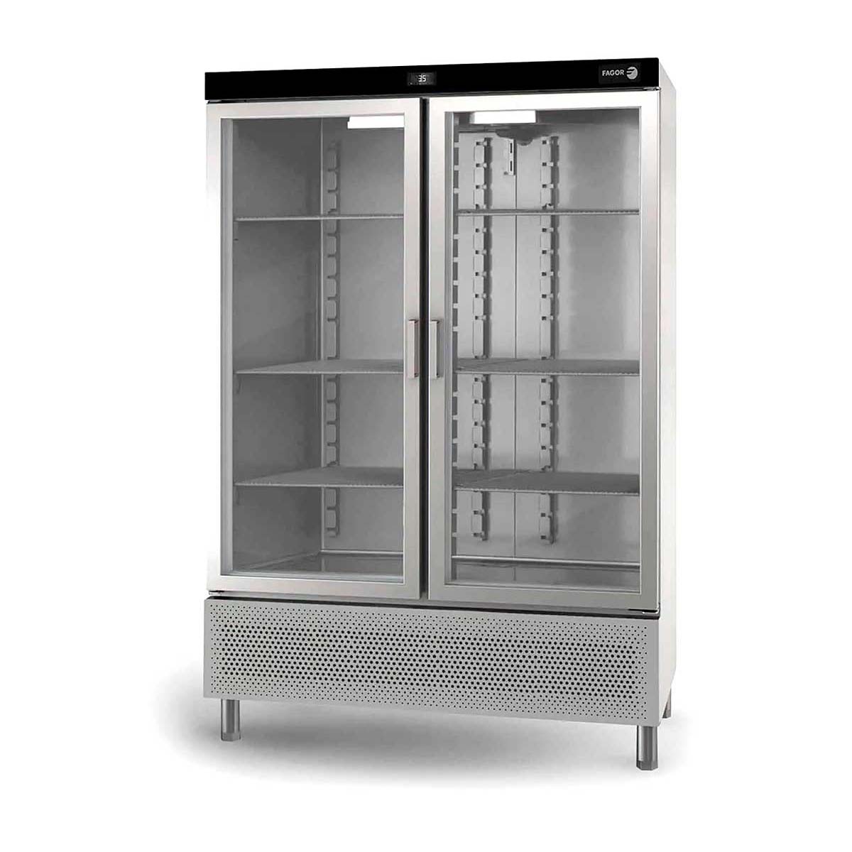 Vitrine réfrigérée à deux portes. Il est fabriqué en acier inoxydable. Avec une lumière LED verticale pour améliorer la visibilité du produit et un réfrigérant naturel avec moins d’impact sur l’environnement. Il a une plage de température de 0 à 8 ºC. Comprend 6 étagères à tiges.