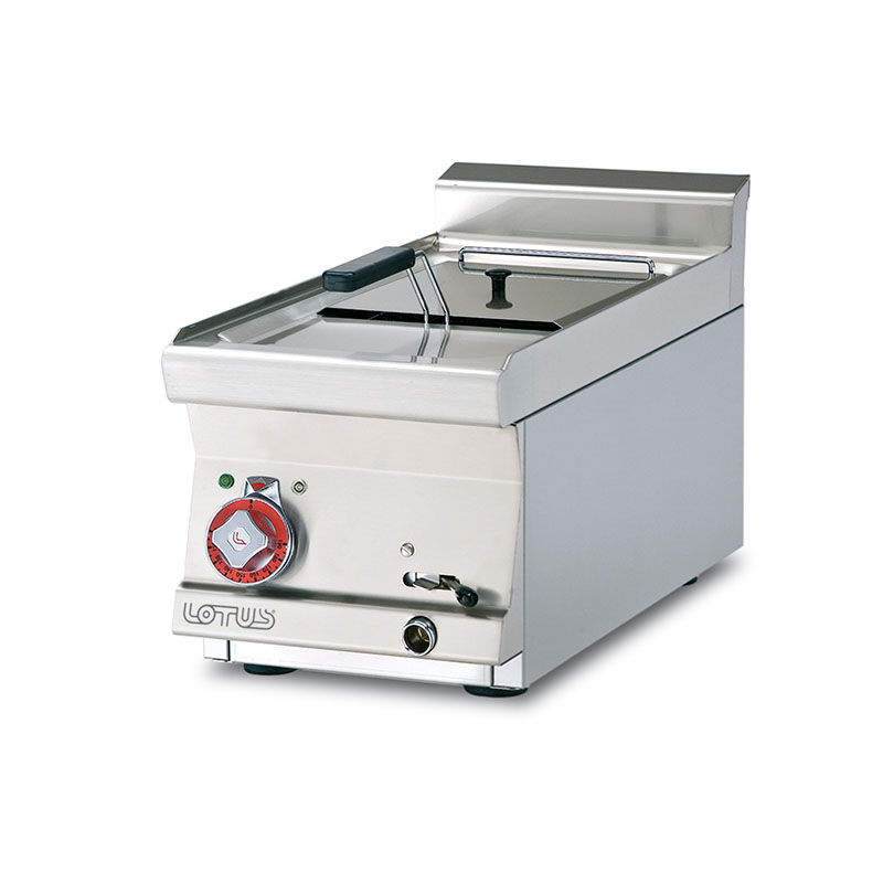 Friteuses électriques, à usage professionnel, haute puissance et avec large surface chauffante. Avec bac simple ou double, avec couvercle et panier en mailles d’acier chromé brillant, filtre bac avec support panier (éventuellement deux paniers de 1/2 pour chaque bac), avec garantie d’hygiène absolue.