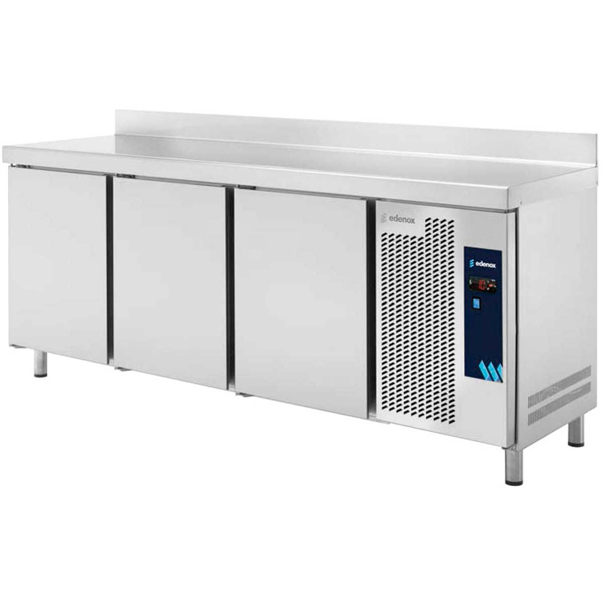 Profondeur 80 cm – Capacité 290 à 590 litres Table réfrigérée avec structure compacte en acier inoxydable et contrôle électronique de la température avec affichage numérique. Il est doté de pieds réglables en hauteur, de portes avec poignées intégrées et de bavettes arrière. Comprend 1 gril GN 1/1 de tiges laminées et 2 jeux de guides par porte.